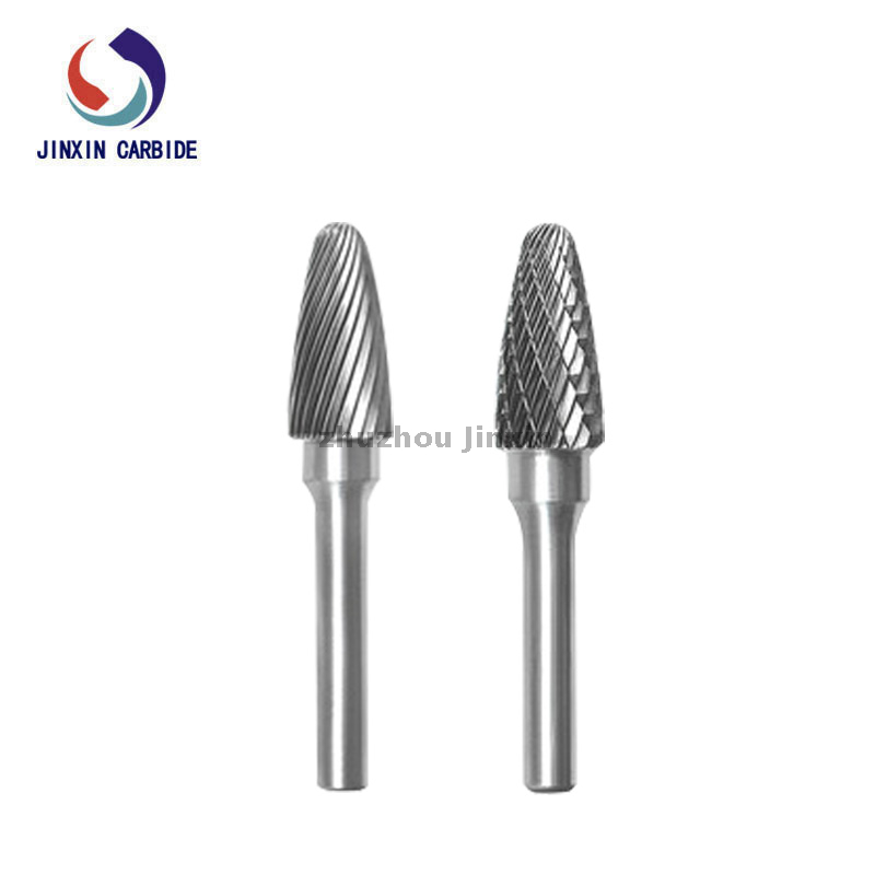 Le frese rotanti in carburo di tungsteno vengono solitamente utilizzate con rettificatrici elettriche ad alta velocità o utensili pneumatici. Il tipo F a forma di albero con frese rotanti a punta è adatto per la lavorazione di profili ad arco stretto.
